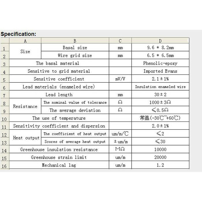 ITEM NAME:1000 ohm Full-bridge Strain Gauge 1000ohm EB Foil Strain Gauge for Analog Sensor Item Detail: New:100% New and High quality Type: 1000 ohm Full-bridge Strain Gauge The basal material: Phenolic epoxy Basa Size: 9.6mm*8.2mm Strain gauge paste process: 1, The strain gauge choice selection elastic adhesive considerate sided polished surface cleaning Patch crossed positioning installed the patch clamp curing Quality Inspection lead connection parameter compensation correction protective treatment performance testing 2, The sensor patch is recommended to use a high-performance 610 glue shop, when a patch of clean room requirements, relative humidity less than 60%. 3, With a particle size range of 200-400 sandpaper number of members of the elastomer or elastomers polished hair treatment. 4, Surface cleaning available in a single direction acetone, ethanol and other clean and dry in time. 5, SMD parts are available 3H drawing pencil or ballpoint pen to draw a faint trace of oil-free as a positioning mark. 6, Remove the strain gauge placed on a clean PTFE film with a cotton swab moistened with absolute alcohol to clean both sides of the strain gauge, paste side up dry spare. 7, 610 with a brush dipped in glue applied to the specimen placement position. 8, Tweezers take the strain gauge alignment marks paste and covered with Teflon film, and use your fingers to gently squeeze excess glue and bubbles discharged. 9, Placing temperature silicone rubber, clamps, and then curing paste process and stabilization process. 10, With a 20W soldering iron welding wire, welding time is less than one second, and washed with ethanol joints. 11, Chip quality inspection items: the change in resistance, insulation resistance, chip position and strain gauge whether there is a bubble under. 12, requires the use of special protective strain gauge silicone rubber. (Silastic shop can provide, liquid, room temperature curing, easy to use). Strain gauges attached flow: Strain gauge selectio.Find many great new & used options and get the best deals for 1000 ohm Full-bridge Strain Gauge 1000ohm EB Foil Strain Gauge for Analog Sensor at the best online prices at Order2india Shopping! Free shipping for many products!