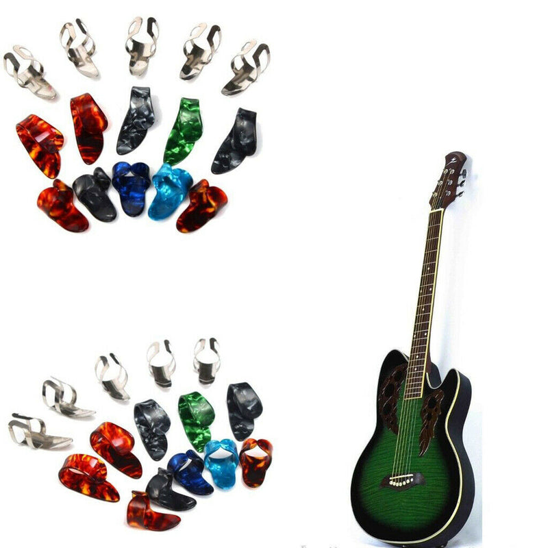 ITEM NAME:15pcs Stainless Steel Celluloid Thumb Finger Guitar Picks img *{margin:0;padding:0;.Material: Stainless Steel Celluloid. Colorful thumb picks: (L x D) 32 x 15mm. 5 × Colorful thumb picks (Send in random). Colorful index finger picks: (L x D) 25 x 15mm. 5 × Colorful index finger picks (Send in random).
