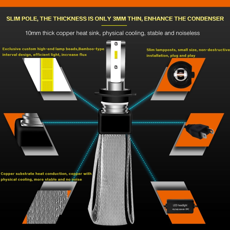 2 PCS H7 30W 4000LM 6000K Pure White CSP LED Headlight Bulbs Conversion Kit, DC 9-36V