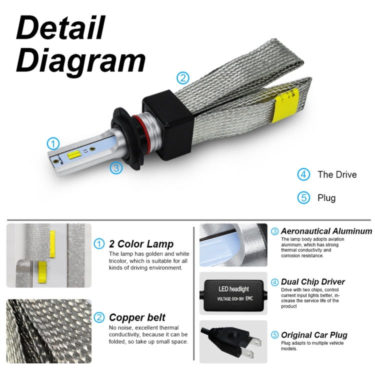 2. Upgrade lamp beads. It can switch the light color into pure white, gold, warm white. It can change color temperature according to the real time weather. Switching instantaneous light through the power switch. Easy to deal with all kinds of weather, escort for safe driving.