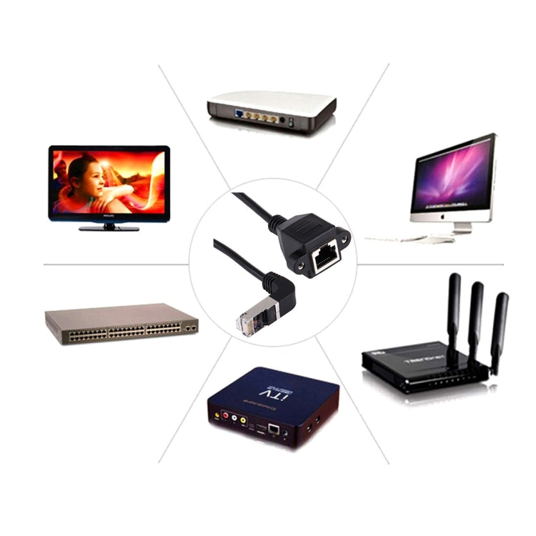 30cm RJ45 Male Bent Down to RJ45 Female LAN Extension Cable