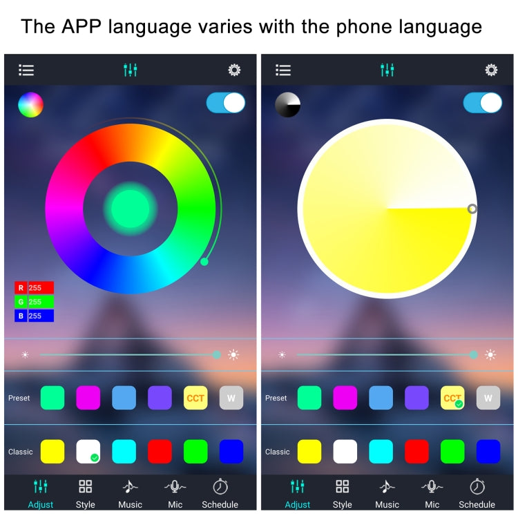 8. The APP language varies with the phone language.