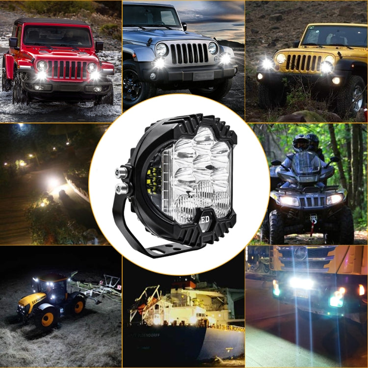 1. Adopt double side light design, work together with front spotlight. The perfect combination of spotlight and floodlight beams emits 150 degrees wider and 761FT farther light coverage, eliminating darkness and potential hazards and improving your driving safety. Suitable for fog lights, side lights, trench lights, running lights, auxiliary lights, etc.