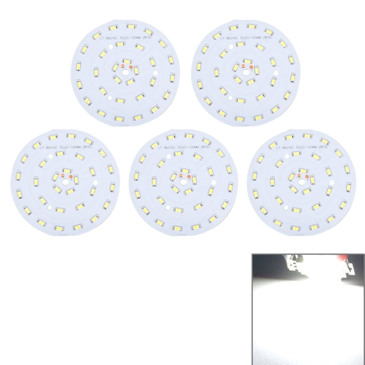 5 PCS 15W SMD 5730 Aluminum Base Light Panel, 30 LEDs 1350 LM 3000-6500K, Diameter: 100mm