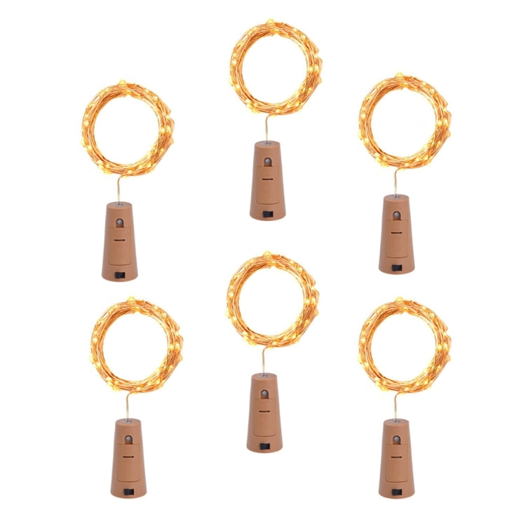 6 PCS Waterproof Warm White Light Wine Bottle Cork Copper Wire String Light , 18 LEDs Mini Starry Rope Fairy for Party / Holiday, Length: 90cm, DC 6V