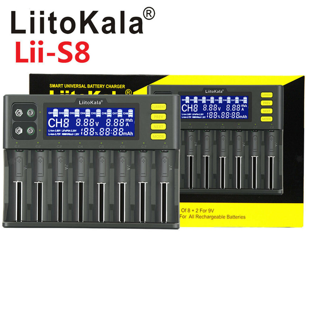 ITEM NAME:8 Bay Smart Battery Charger 2A 9V Li-8.4V Fit for Universal 20650 AA C SC Description: Universal Battery Charger: Not only compatible with 26650, 21700, 18650, 18350, 20650, 14500 li-ion batteries, NiMH/Cd: AA, AAA, C, SC; 9V Li-8.4V and NiMH 10.5Vetc. Fast Charger with LCD Display: battery charger has an LCD display to show the charging status in real time. Each charging slot monitors and charges independently, display each cell's voltage, charging current, charging time, battery type Smart Charge and Easy to Use: It can identify li-ion, Ni-MH batteries and Ni-CD batteries intelligently and automatically, also can be select to charge LiFePO4 battery manually, meet your all needs There are five levels of charging current 0.30A, 0.50A, 0.70A, 1.00A, 2.00A; Charging current in the 1/3/6/8 slots, the maximum value can be 2.0A, and the maximum value is 1.0A in the 2/4/5/7 slots You will get 1x 8Slots Battery Charger, 1x AC Adapter, 1x Car Adapter, 1x User Manual Specification: Size: Approx. 195x142.5x35mm/7.67x5.61x1.38inch Color: Black Weight: 800g 8 Slots Input voltage: DC 12V/4A Output voltage: DC4.2V / DC1.48V / DC3.65V / DC4.35V / 9V Output current Lithium battery charging current: 2000mA*4 / (300mA / 500mA / 700mA / 1000mA) * 8 NiMH battery charging current: 500mA *8 9V battery charging current: 85mA *2 Rechargeable battery specifications: Li-ion 26650,21700,18650,18350, 20650,14500; NiMH/Cd: AA, AAA, C, SC; 9V Li-8.4V and NiMH 10.5Vetc. Termination method: intelligent voltage monitoring Package Includes: 1x Lii-S8 Charger(US Plug) 1x US Adapter(12V/4A) 1x Car Charger 1x Manual Note: Color might be slightly different due to the color calibration of each individual monitor. Please allow slightly measuring deviation due to manual measurement..Find many great new & used options and get the best deals for 8 Bay Smart Battery Charger 2A 9V Li-8.4V Fit for Universal 20650 AA C SC at the best online prices at Order2india Shopping! Free shipping for many products!