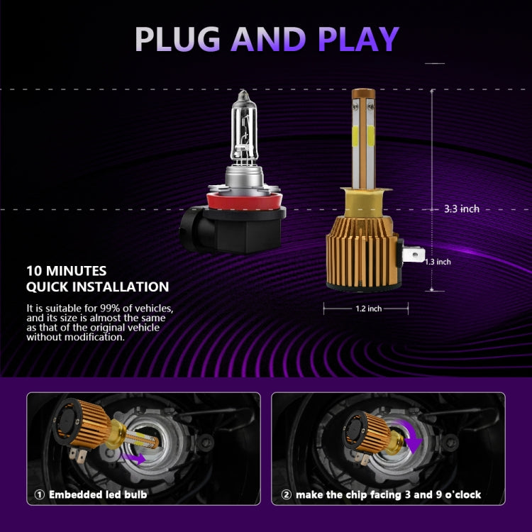 1. The head is designed with a 360-degree LED chip structure and has 12 high-performance LEDs. The light source has no ghosting, negative or dead corners, and the illumination range is wider and farther, making night driving safer. 2. Equipped with an efficient cooling system, an all-aluminum alloy lamp body, a hollow forged radiator design, and a 12000RPM high-efficiency silent cooling fan to ensure more efficient and stable operation of the lamp, and prolong the service life by 200%. 3. Plug and play, almost 1:1 design with the original car, with built-in drive structure and ultra-thin and ultra-short radiator, it is very suitable for 99% of car shells and original sockets. No need to change the dust cover of the original car, Installation is more convenient and beautiful. 4. It has anti-corrosion, dust-proof, waterproof and shock-proof performance to ensure your driving safety.