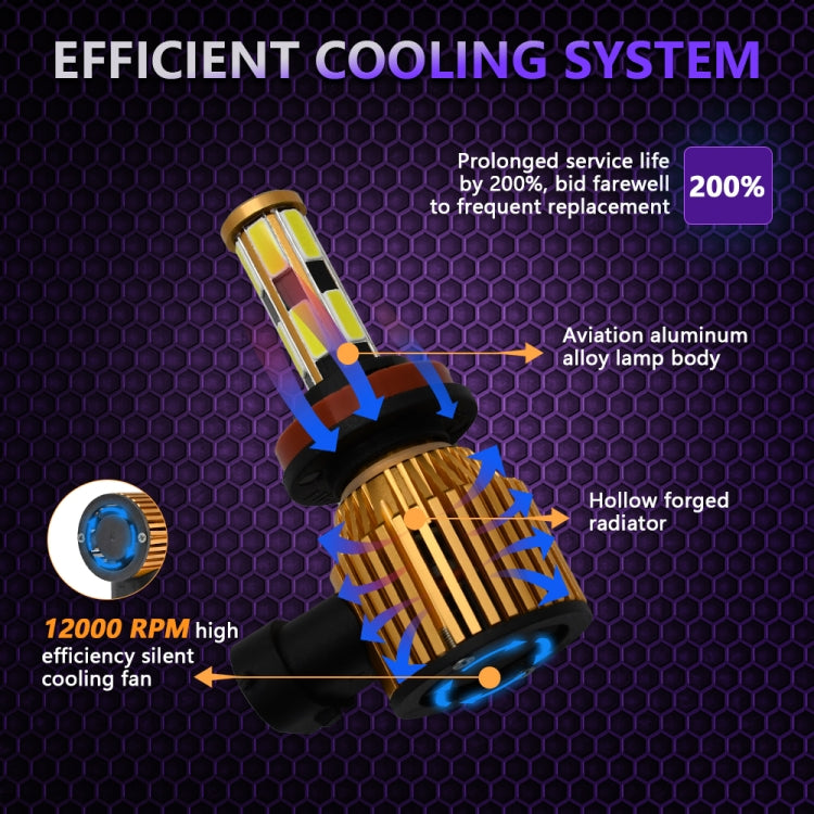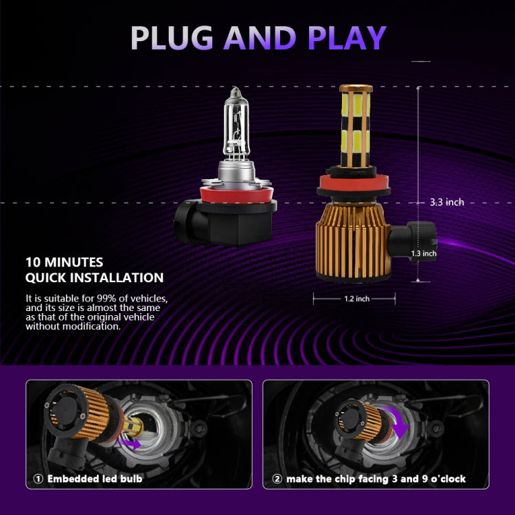 1. The head is designed with a 360-degree LED chip structure and has 12 high-performance LEDs. The light source has no ghosting, negative or dead corners, and the illumination range is wider and farther, making night driving safer. 2. Equipped with an efficient cooling system, an all-aluminum alloy lamp body, a hollow forged radiator design, and a 12000RPM high-efficiency silent cooling fan to ensure more efficient and stable operation of the lamp, and prolong the service life by 200%. 3. Plug and play, almost 1:1 design with the original car, with built-in drive structure and ultra-thin and ultra-short radiator, it is very suitable for 99% of car shells and original sockets. No need to change the dust cover of the original car, Installation is more convenient and beautiful. 4. It has anti-corrosion, dust-proof, waterproof and shock-proof performance to ensure your driving safety.