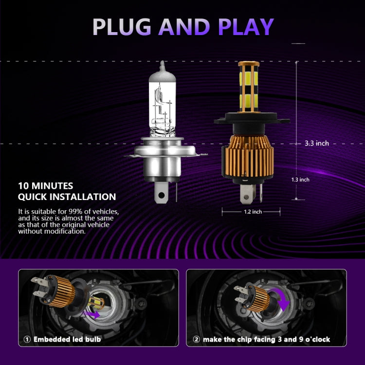 1. The head is designed with a 360-degree LED chip structure and has 12 high-performance LEDs. The light source has no ghosting, negative or dead corners, and the illumination range is wider and farther, making night driving safer. 2. Equipped with an efficient cooling system, an all-aluminum alloy lamp body, a hollow forged radiator design, and a 12000RPM high-efficiency silent cooling fan to ensure more efficient and stable operation of the lamp, and prolong the service life by 200%. 3. Plug and play, almost 1:1 design with the original car, with built-in drive structure and ultra-thin and ultra-short radiator, it is very suitable for 99% of car shells and original sockets. No need to change the dust cover of the original car, Installation is more convenient and beautiful. 4. It has anti-corrosion, dust-proof, waterproof and shock-proof performance to ensure your driving safety.