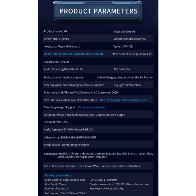 15. Supported audio formats: MP3/WMA/WAV/APE/FLAC