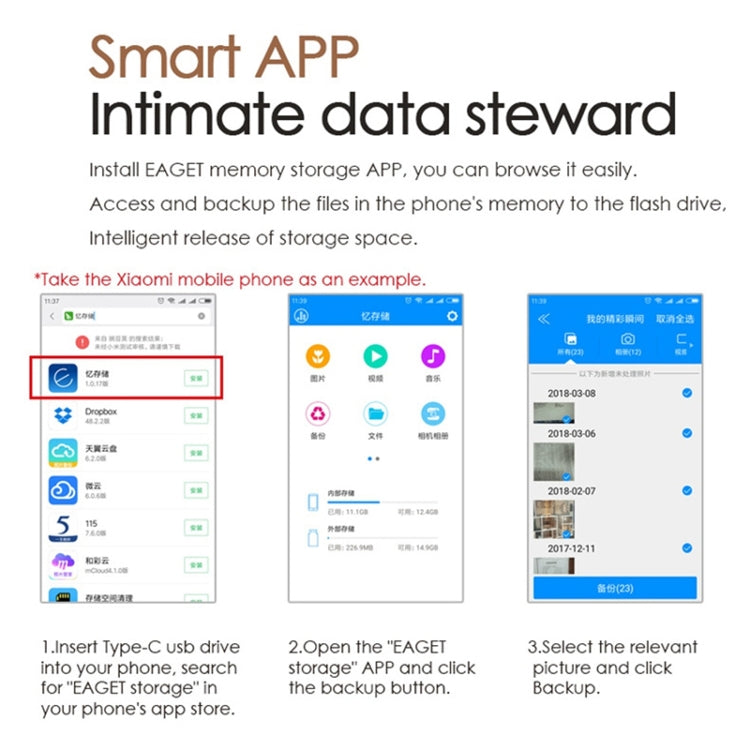 EAGET 128G USB 3.1 + USB-C Interface Metal Twister Flash U Disk, with Micro USB Adapter & Lanyard