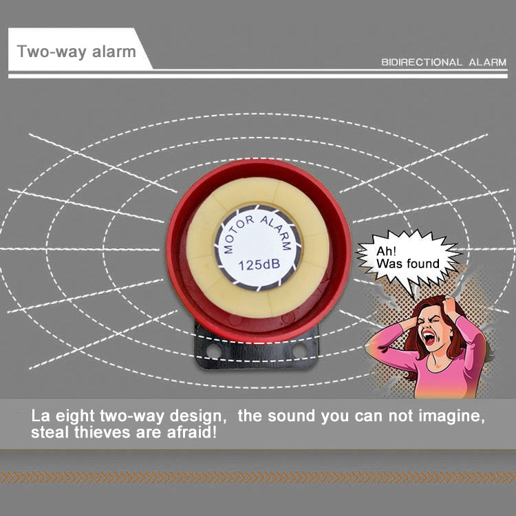 2. Dual speakers, independent speakers can be received in the engine room, remote control long distance, eight- grade sensitivity adjustment, easy installation, does not damage the original car wire, waterproof design, Unit waterproof, to prevent steal oil or the battery, add a spare AAA battery, automatic trimming alarm.