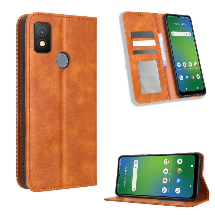 For Cricket Icon 4 Magnetic Buckle Retro Texture Leather Phone Case