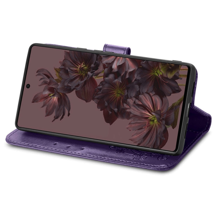 For Google Pixel 7 Four-leaf Clasp Embossed Buckle Leather Phone Case