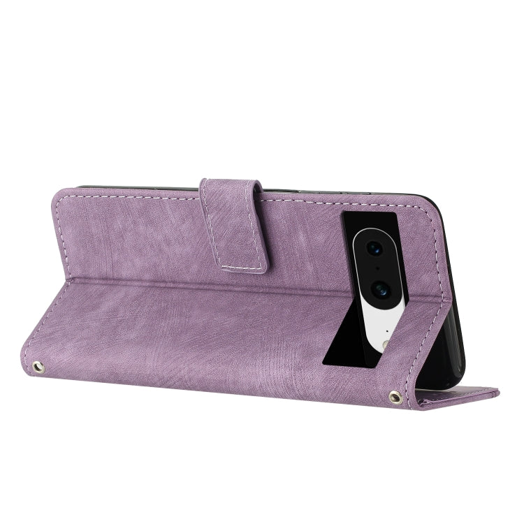 For Google Pixel 8 Skin Feel Stripe Pattern Leather Phone Case with Lanyard