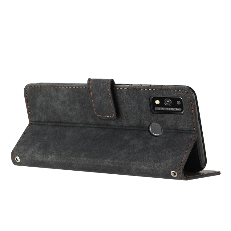 For Honor 9X Lite / 8X Skin Feel Stripe Pattern Leather Phone Case with Lanyard