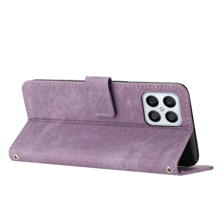 For Honor X8 4G / X30i / Play6T Pro Skin Feel Stripe Pattern Leather Phone Case with Lanyard