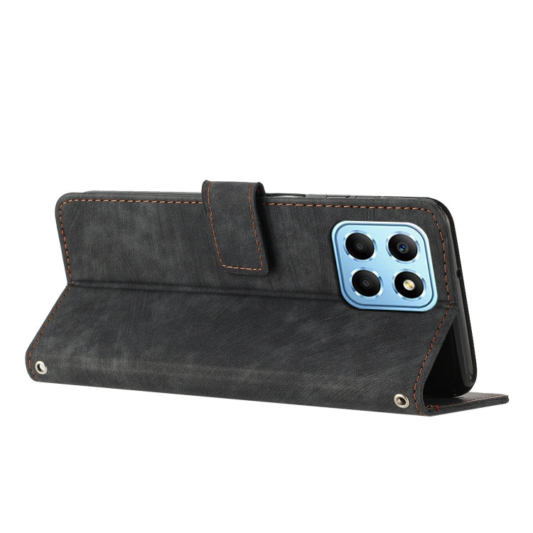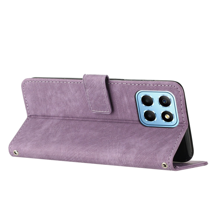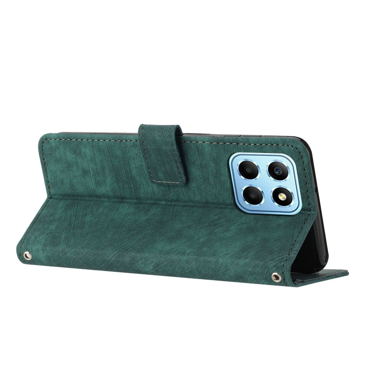 For Honor X8 5G / Play6C 5G / X6 4G Skin Feel Stripe Pattern Leather Phone Case with Lanyard
