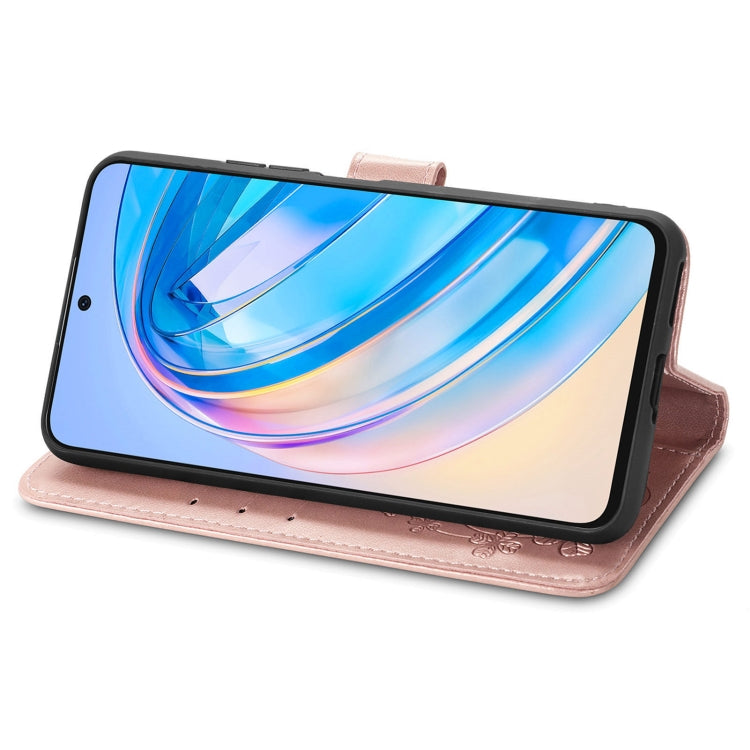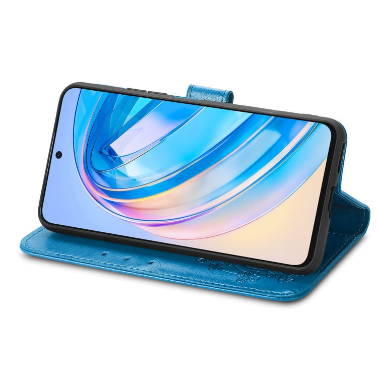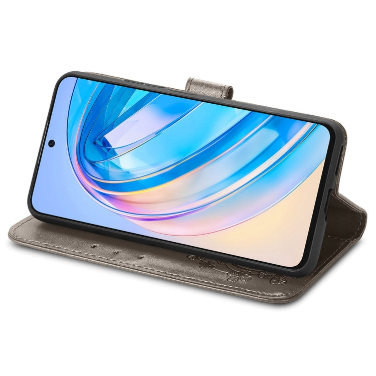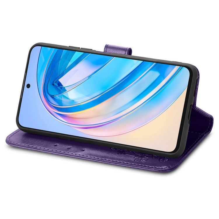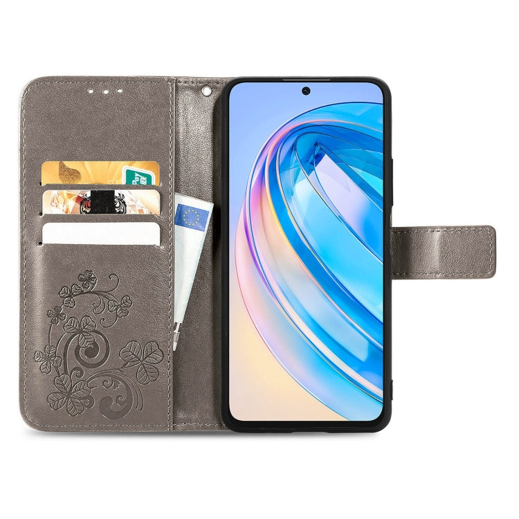For Honor X8A Four-leaf Clasp Embossed Buckle Leather Phone Case