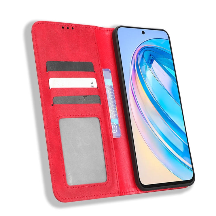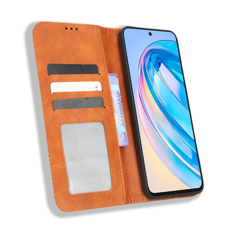 For Honor X8a Magnetic Buckle Retro Texture Leather Phone Case
