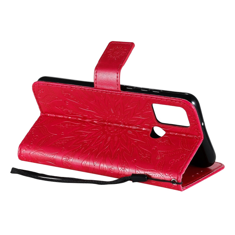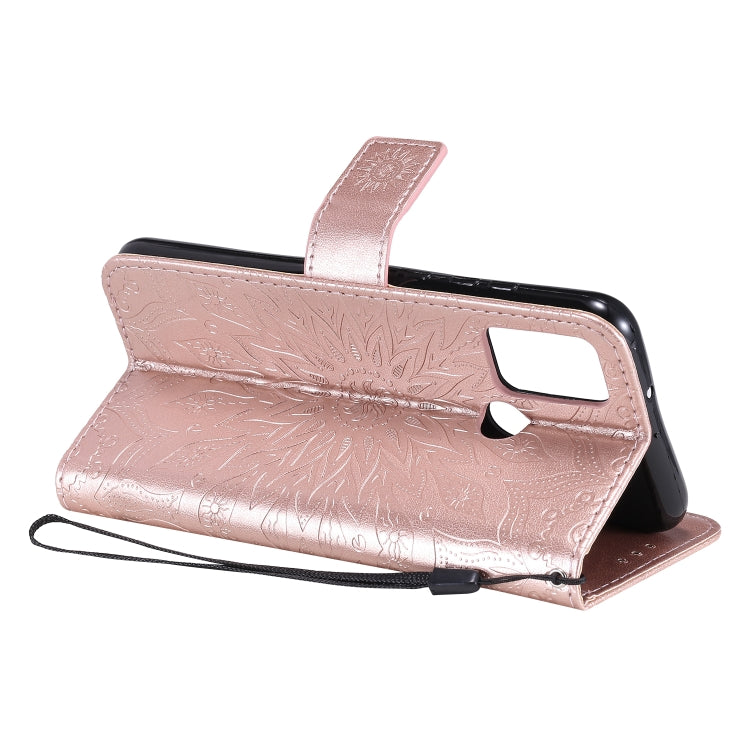 For Huawei Honor 9A Embossed Sunflower Pattern Horizontal Flip PU Leather Case with Holder & Card Slots & Wallet & Lanyard