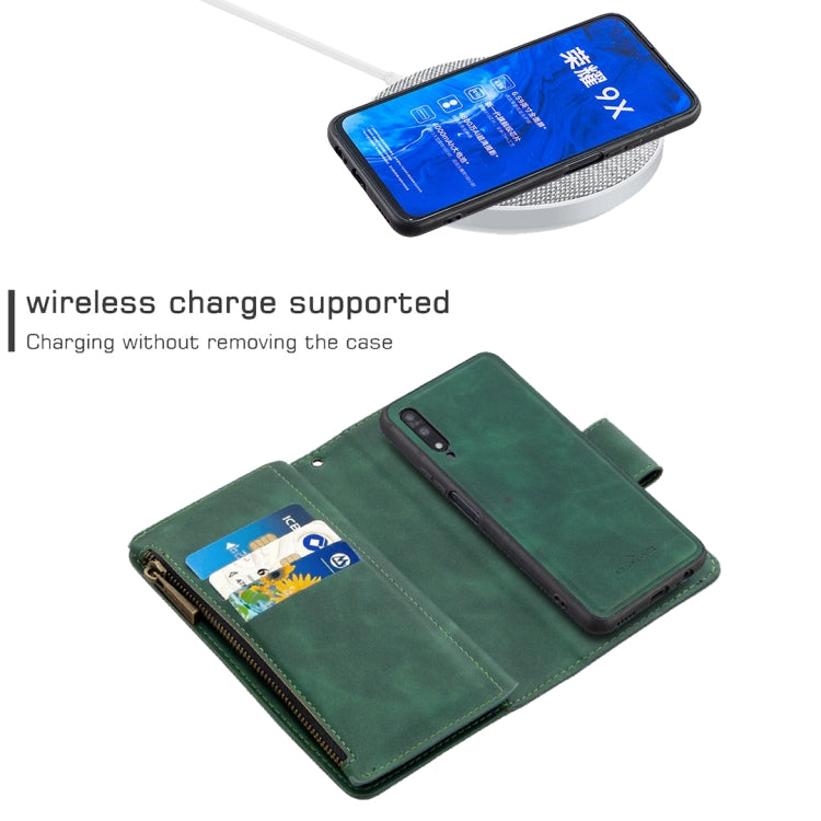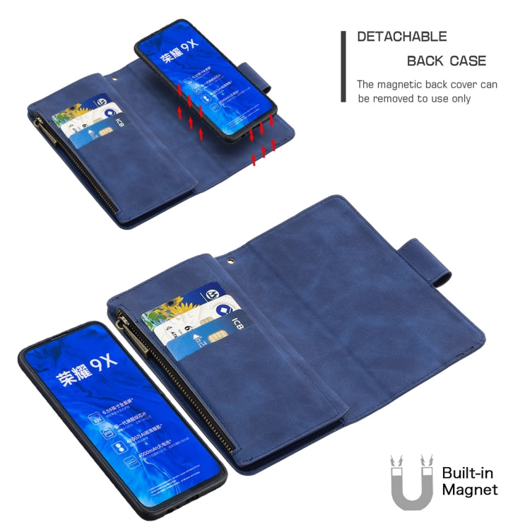 For Huawei Honor 9X Skin Feel Detachable Magnetic Zipper Horizontal Flip PU Leather Case with Multi-Card Slots & Holder & Wallet & Photo Frame & Lanyard