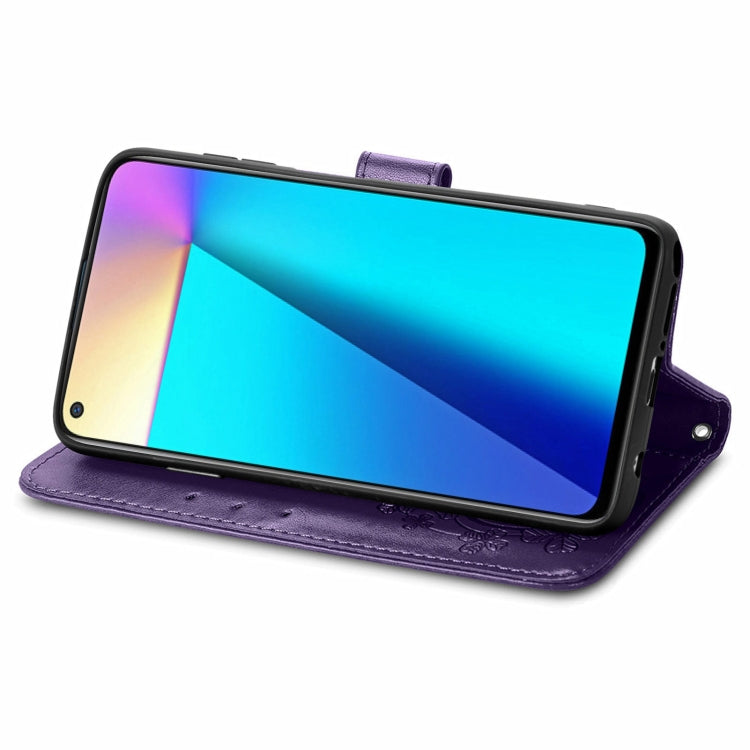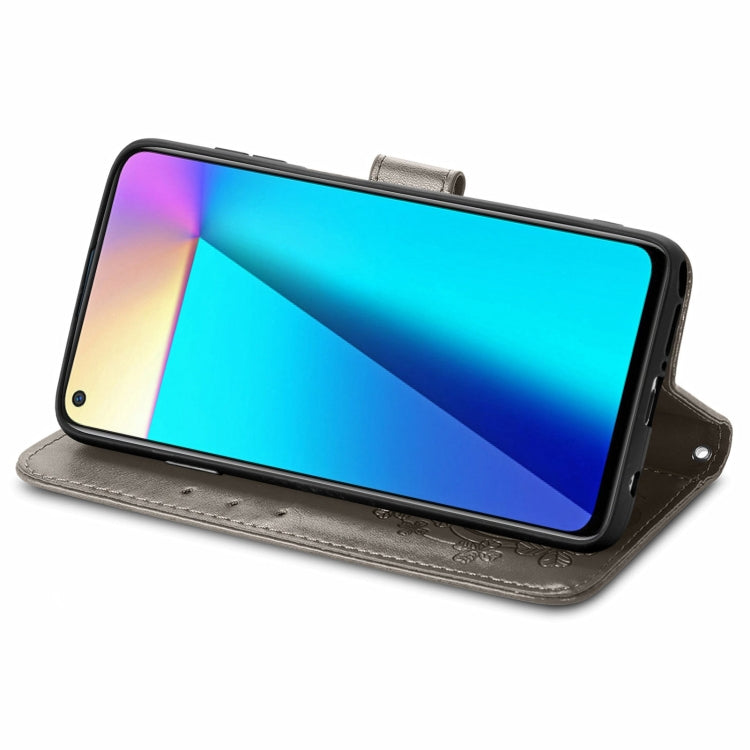 For Infinix Note 7 Four-leaf Clasp Embossed Buckle Mobile Phone Protection Leather Case with Lanyard & Card Slot & Wallet & Bracket Function
