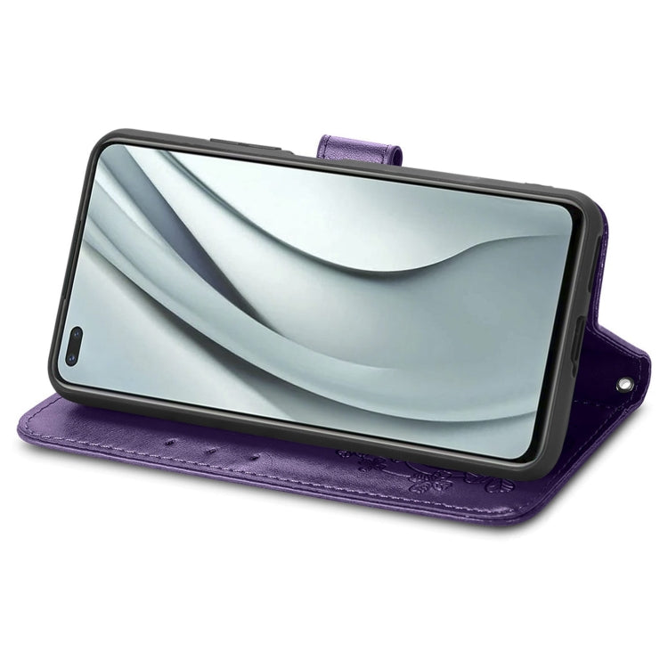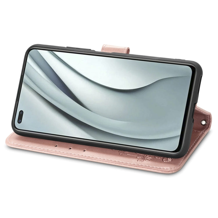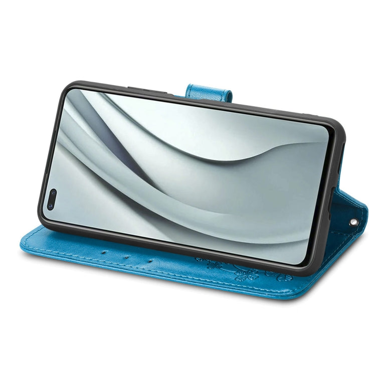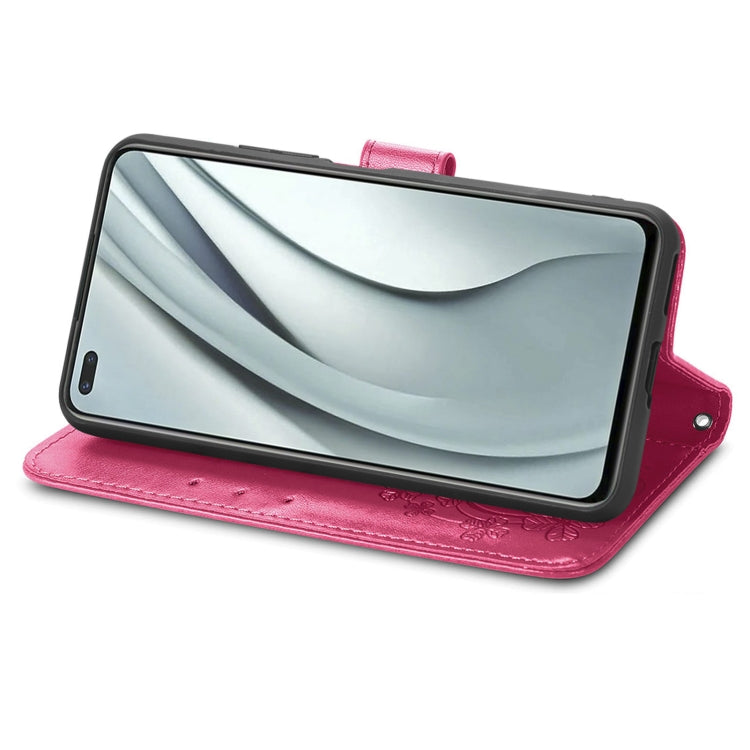For Infinix Note 8 Four-leaf Clasp Embossed Buckle Mobile Phone Protection Leather Case with Lanyard & Card Slot & Wallet & Bracket Function