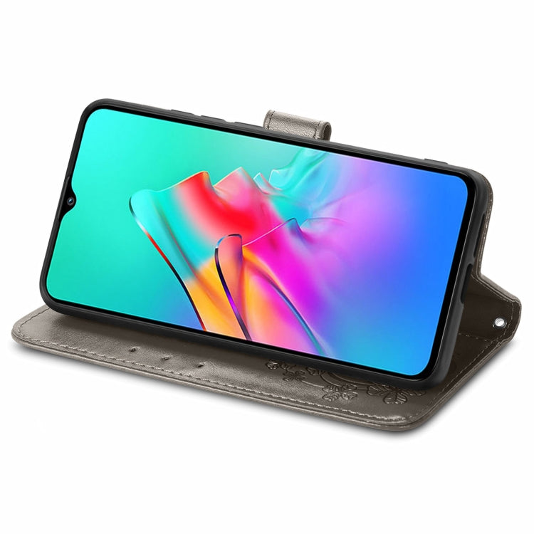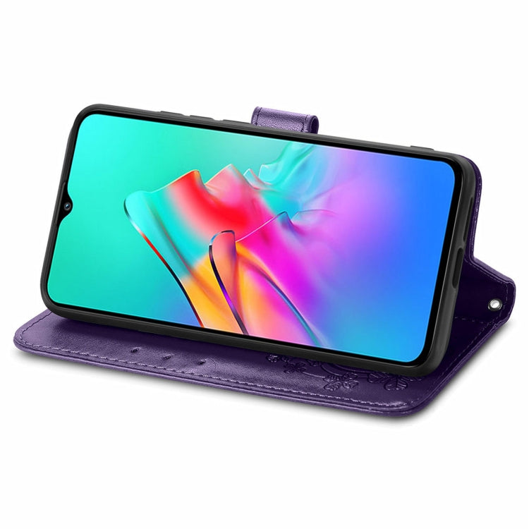 For Infinix Smart 5 Four-leaf Clasp Embossed Buckle Mobile Phone Protection Leather Case with Lanyard & Card Slot & Wallet & Bracket Function