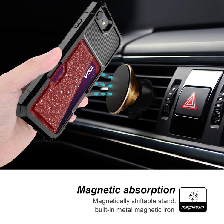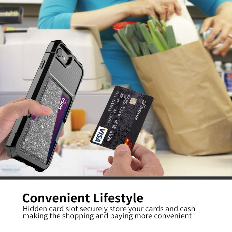 For iPhone SE 2022 / SE 2020 / 8 / 7 Glitter Magnetic Card Bag Phone Case