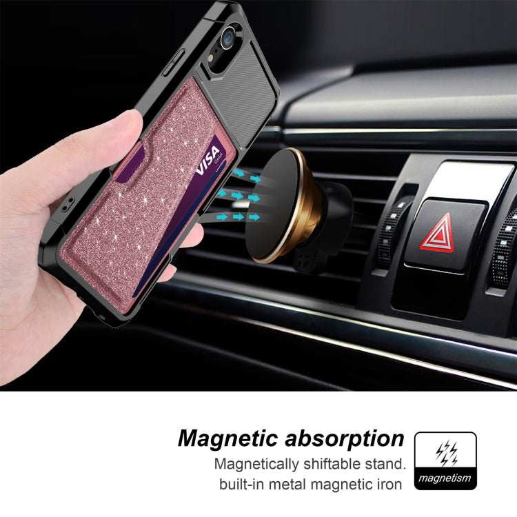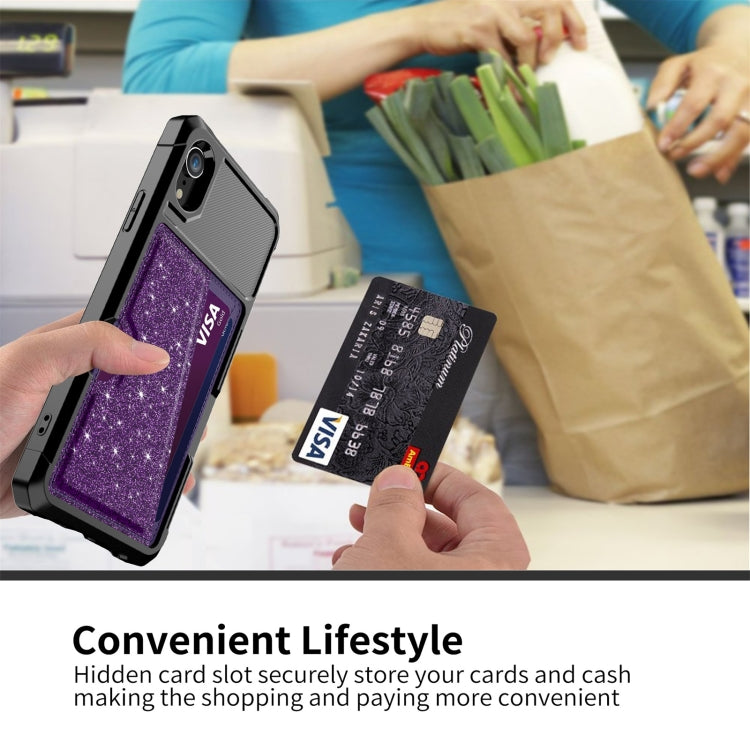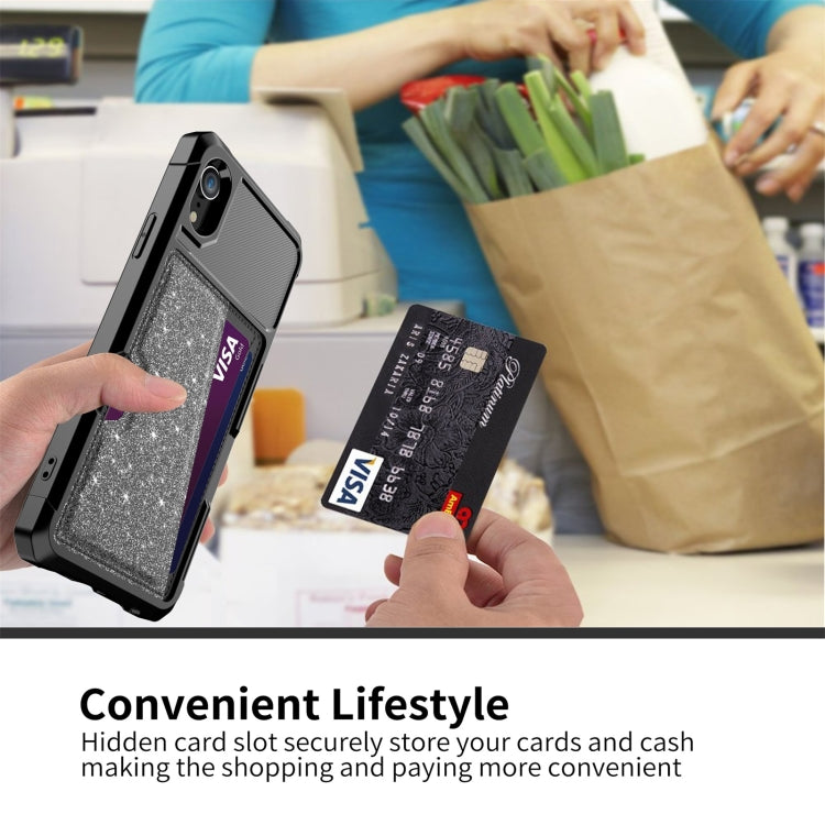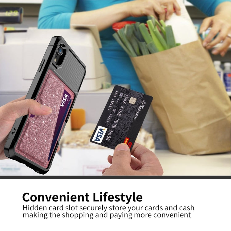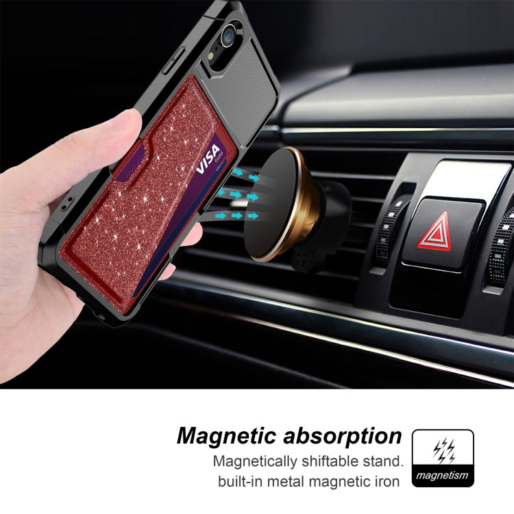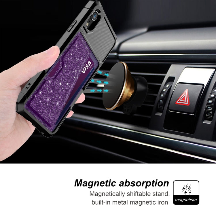 For iPhone XR Glitter Magnetic Card Bag Phone Case
