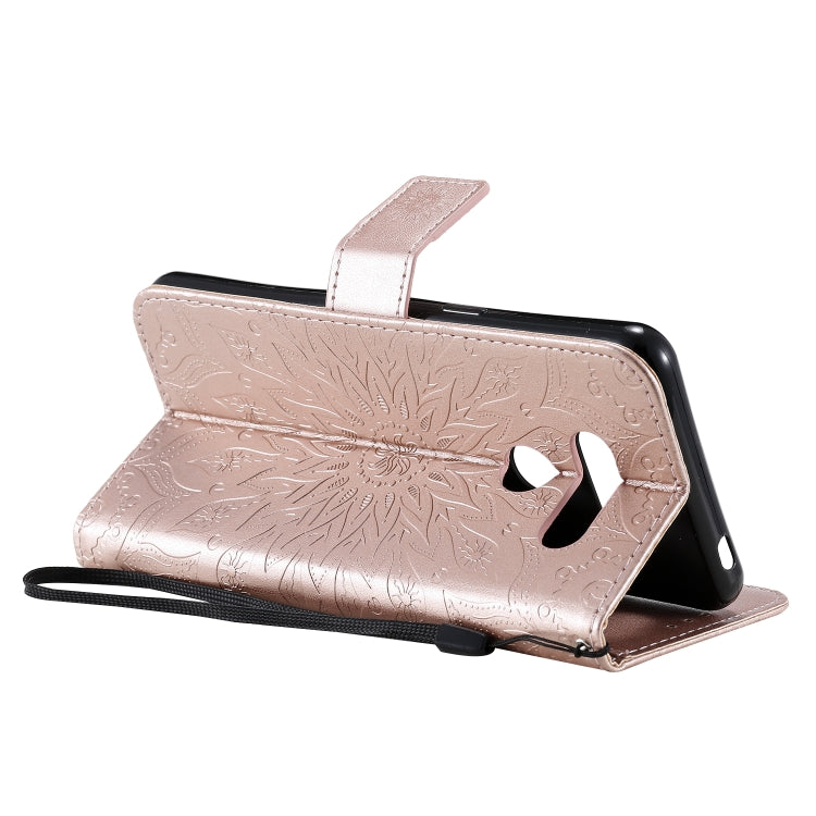 For LG K50S Pressed Printing Sunflower Pattern Horizontal Flip PU Leather Case Holder & Card Slots & Wallet & Lanyard
