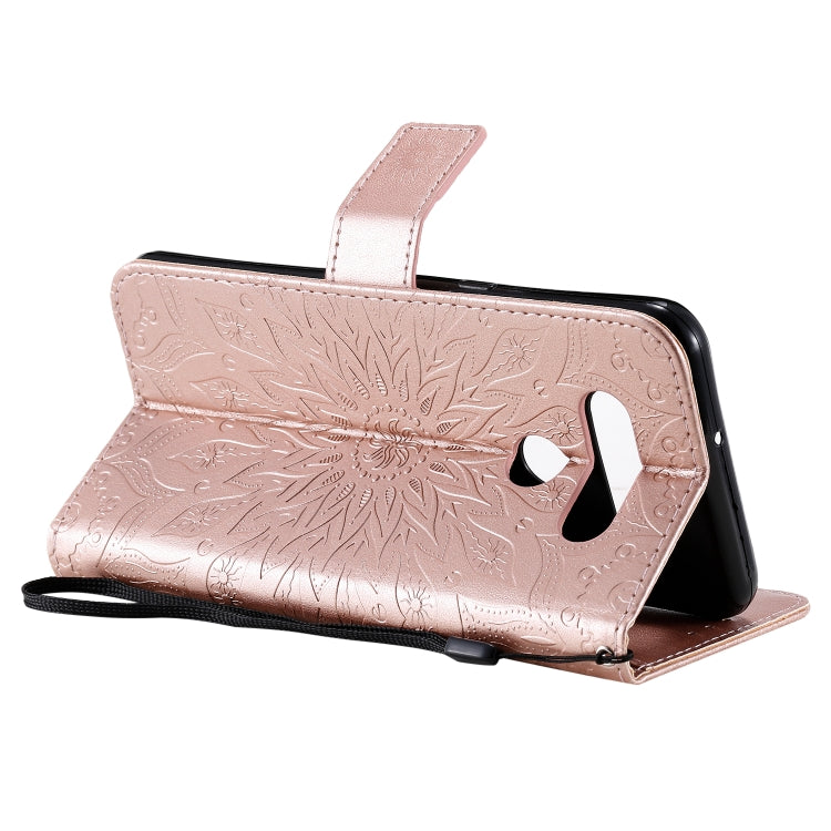 For LG K51 Pressed Printing Sunflower Pattern Horizontal Flip PU Leather Case Holder & Card Slots & Wallet & Lanyard