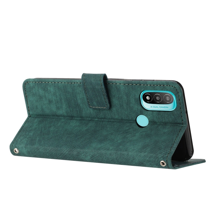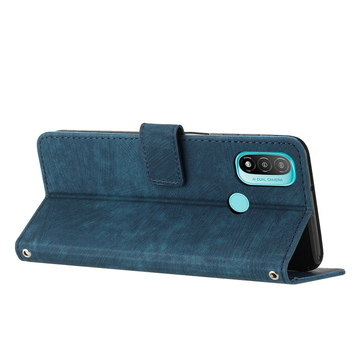 For Motorola Moto E20 / E30 / E40 Skin Feel Stripe Pattern Leather Phone Case with Lanyard