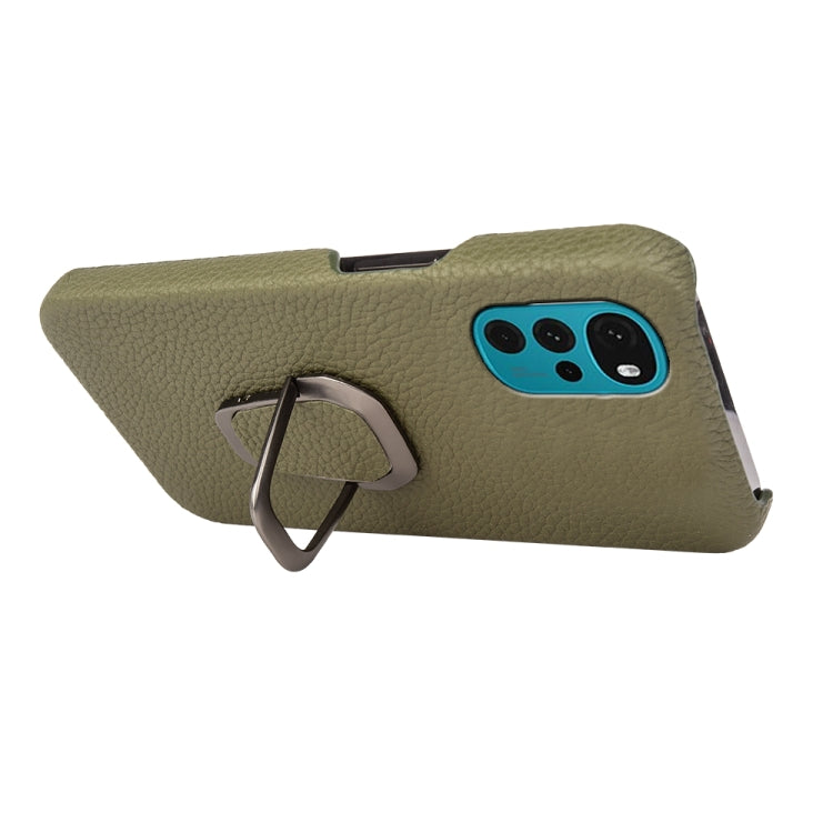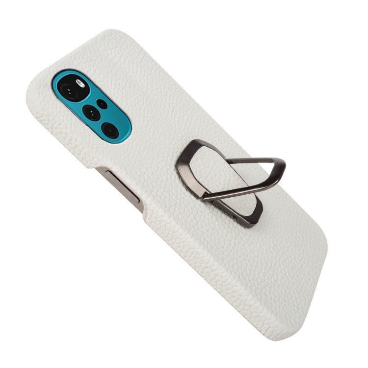 For Motorola Moto G22 Ring Holder Litchi Texture Genuine Leather Phone Case