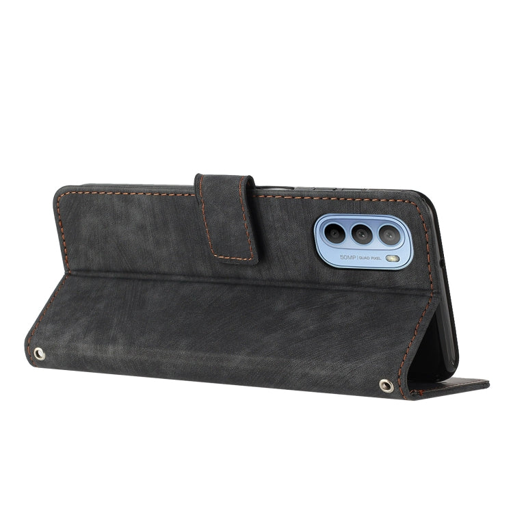 For Motorola Moto G31 / G41 Skin Feel Stripe Pattern Leather Phone Case with Lanyard