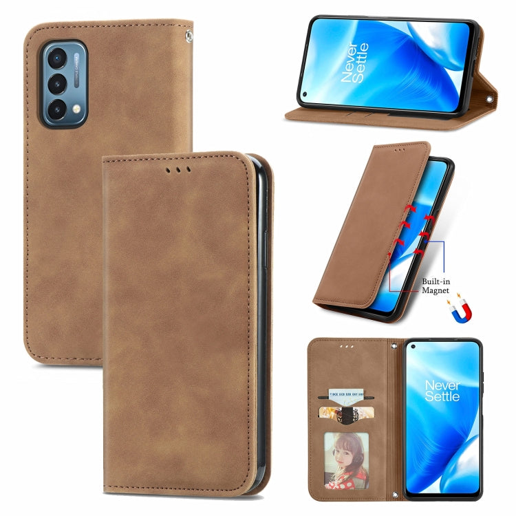 For OnePlus Nord N200 5G Retro Skin Feel Business Magnetic Horizontal Flip Leather Case with Holder & Card Slots & Wallet & Photo Frame