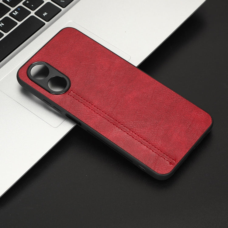 For OPPO A17 Sewing Cow Pattern Skin PC + PU + TPU Phone Case