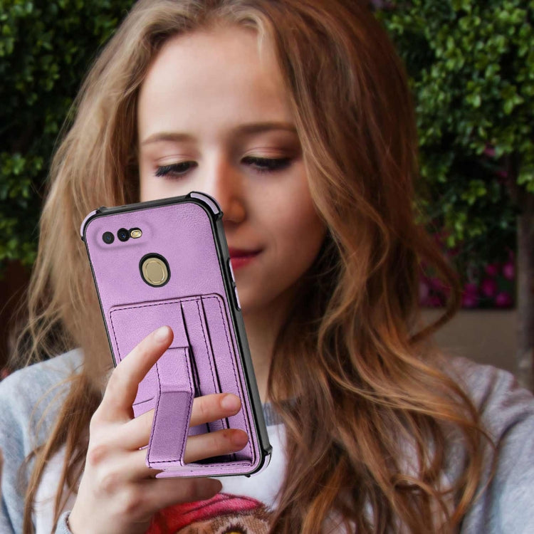 For OPPO A7 / A5s / A12 / A11k Dream PU + TPU Four-corner Shockproof Back Cover Case with Card Slots & Holder