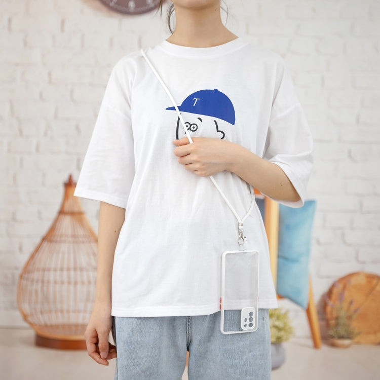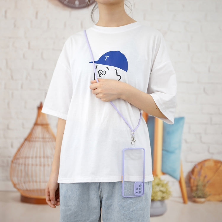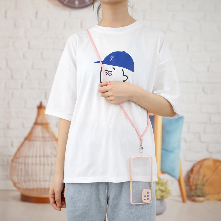 For OPPO F19 Pro+ Transparent PC+TPU Phone Case with Contrast Color Button & Neck Lanyard