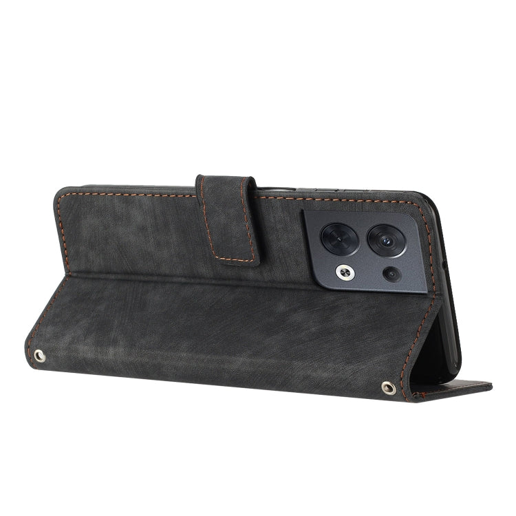 For OPPO Reno8 5G Skin Feel Stripe Pattern Leather Phone Case with Lanyard