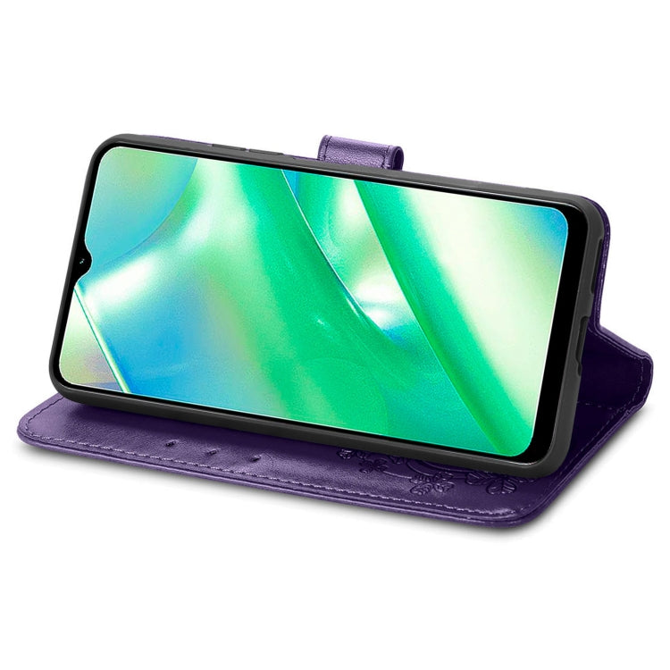 For Realme C33 Four-leaf Clasp Embossed Buckle Leather Phone Case
