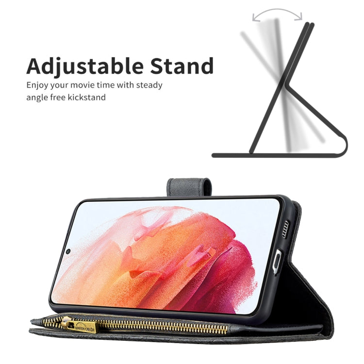 For Samsung Galaxy S21 5G Flying Butterfly Embossing Pattern Zipper Horizontal Flip Leather Case with Holder & Card Slots & Wallet
