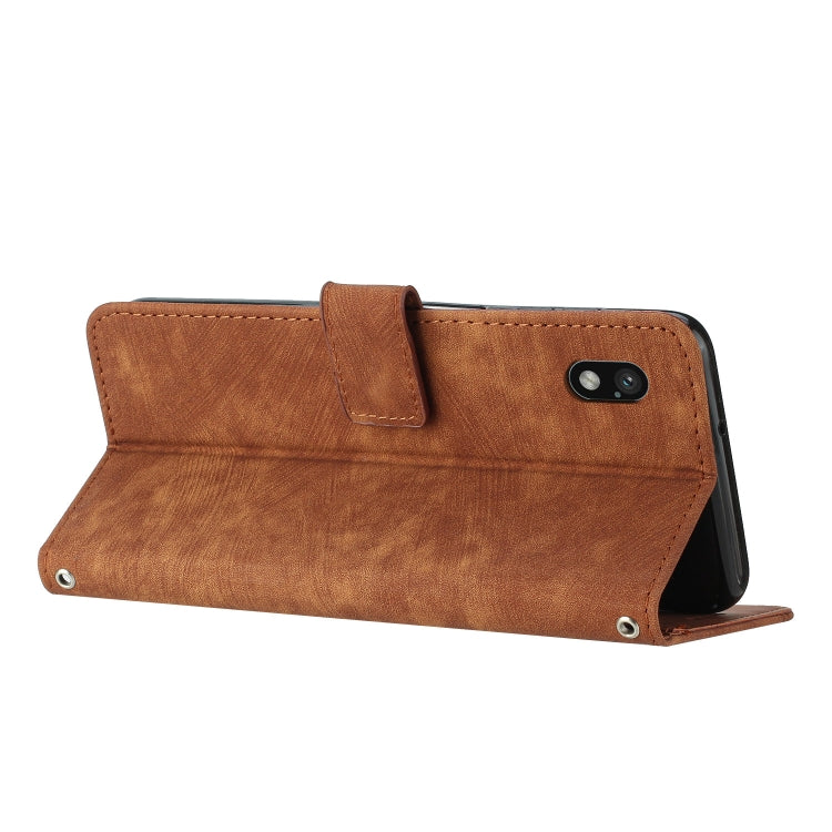 For Sony Xperia Ace III Skin Feel Stripe Pattern Leather Phone Case with Lanyard