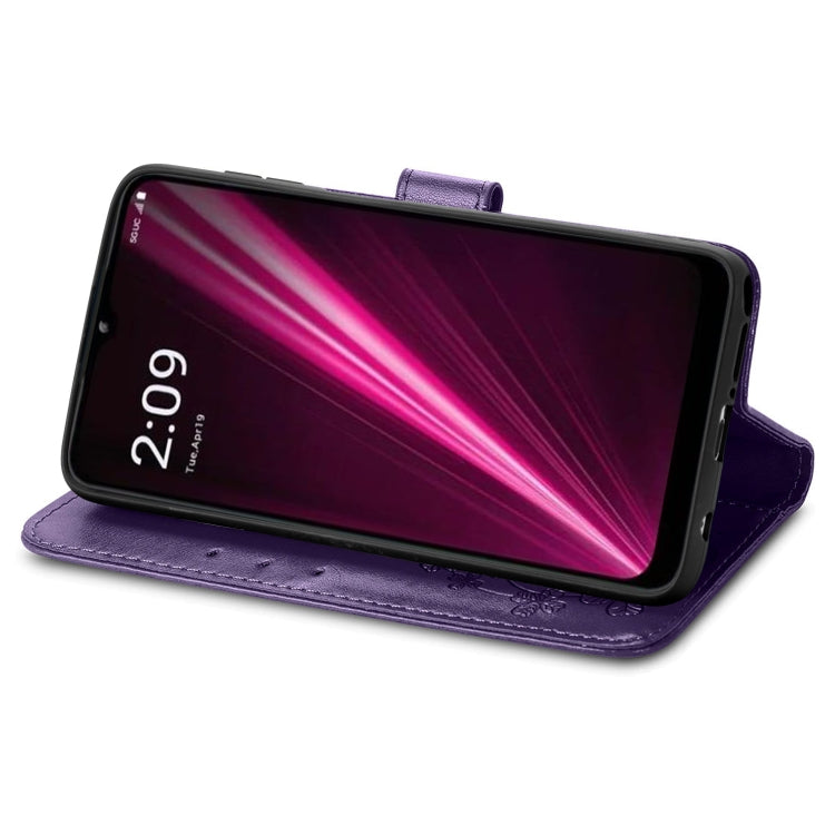 For T-Mobile Revvl 6 Pro 5G Four-leaf Clasp Embossed Buckle Leather Phone Case