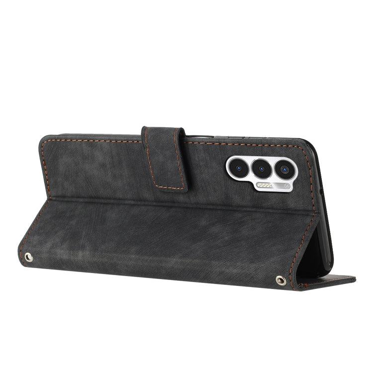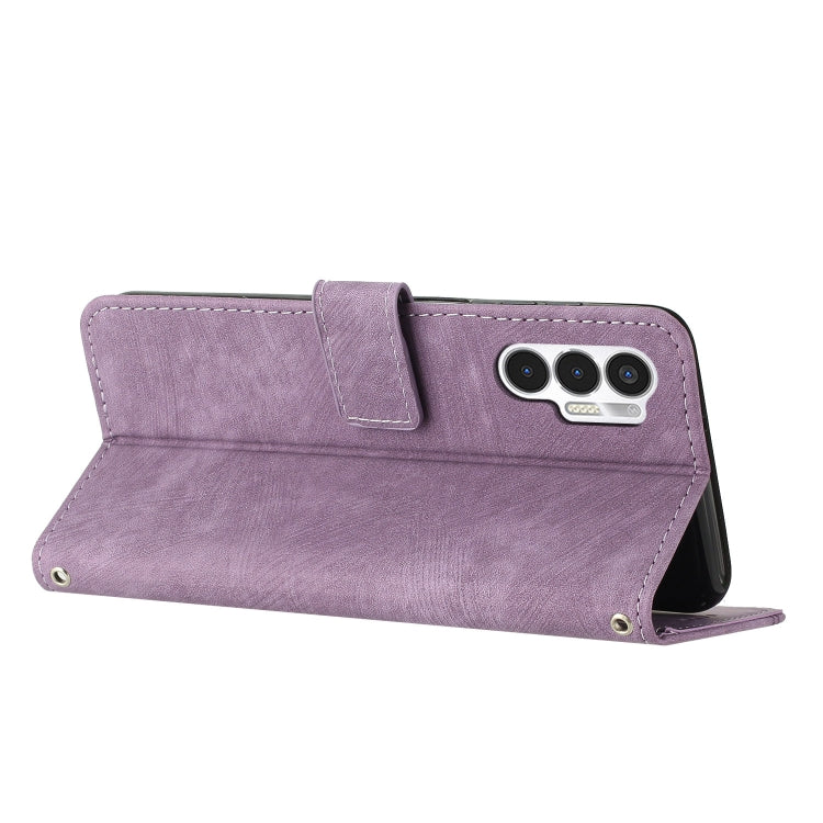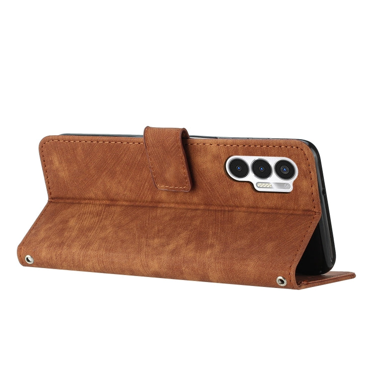For Tecno Pova 3 Skin Feel Stripe Pattern Leather Phone Case with Lanyard