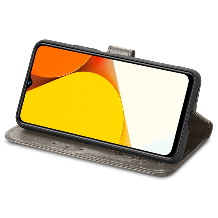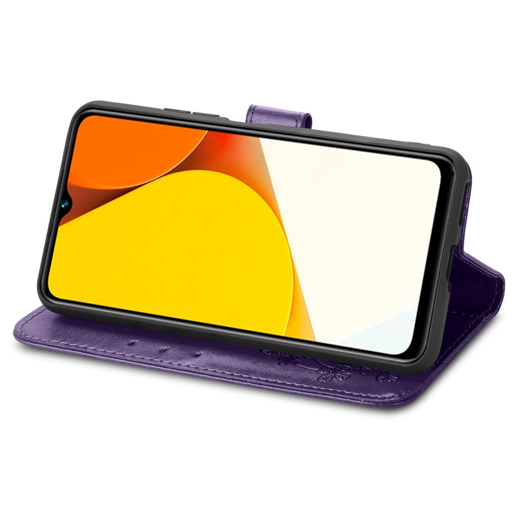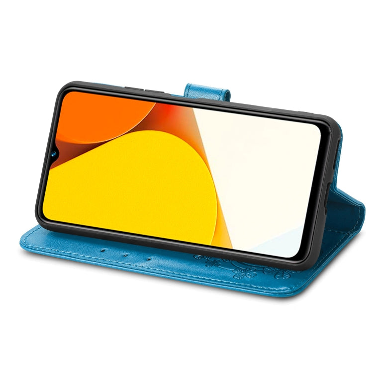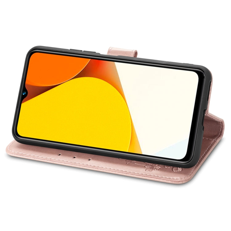 For vivo Y35 Four-leaf Clasp Embossed Buckle Leather Phone Case