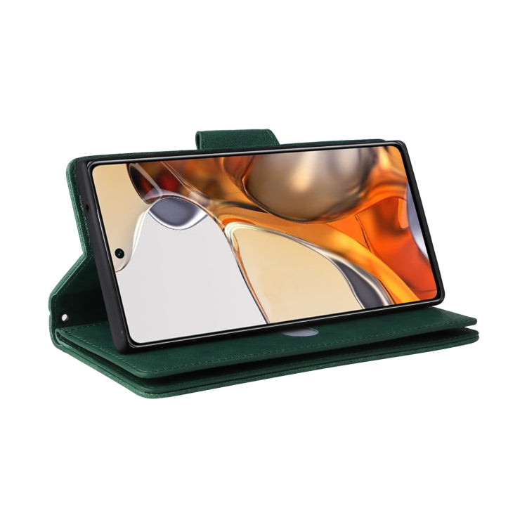 For Xiaomi 11T Rivet Buckle 9 Cards Three Fold Leather Phone Case