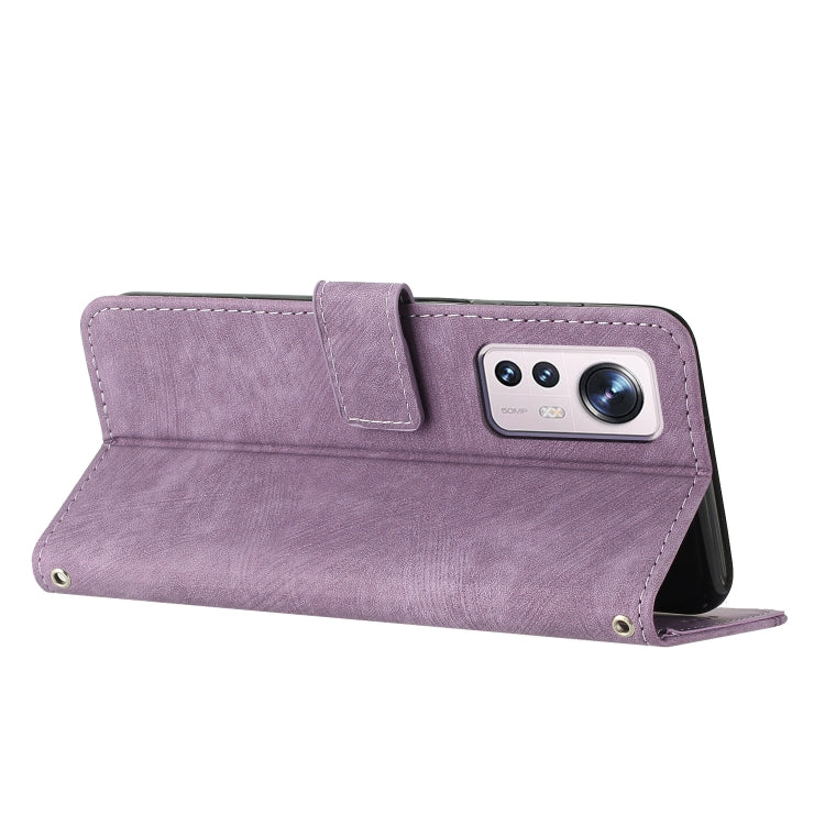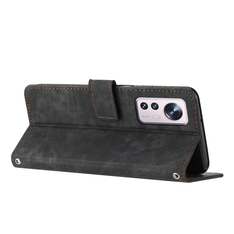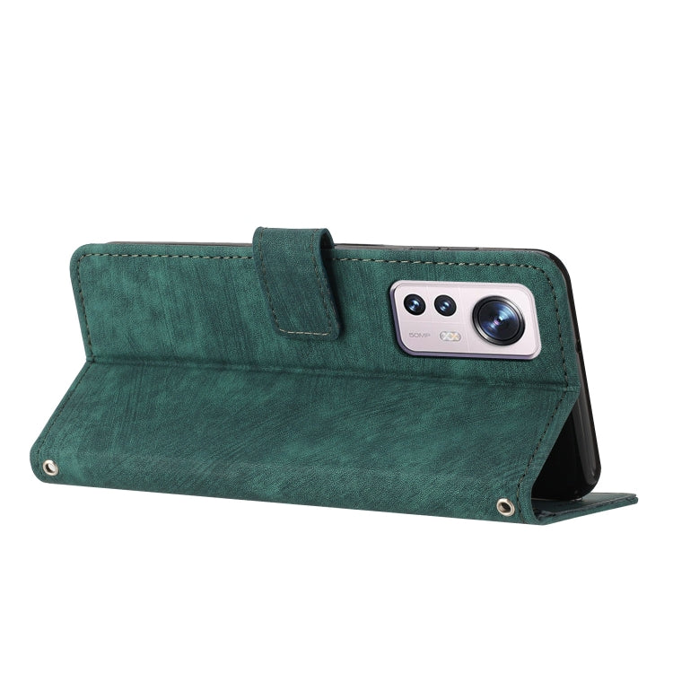 For Xiaomi 12 Lite Skin Feel Stripe Pattern Leather Phone Case with Lanyard