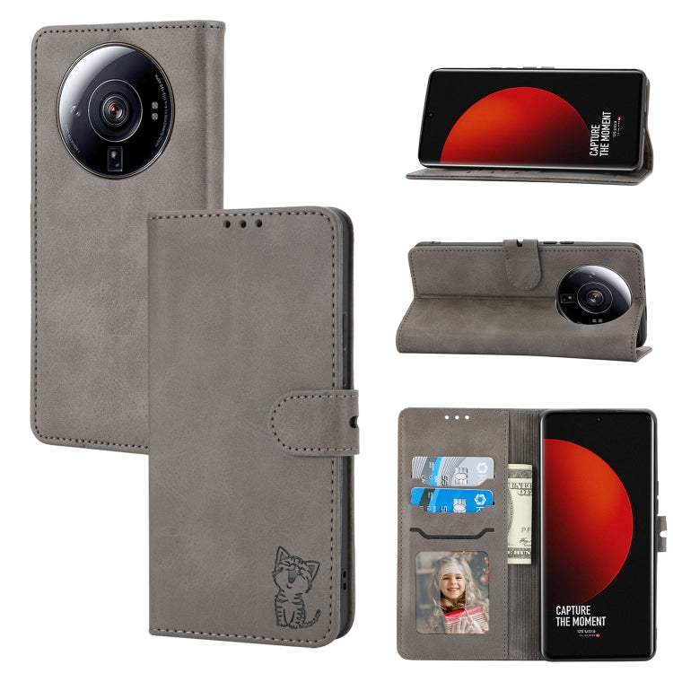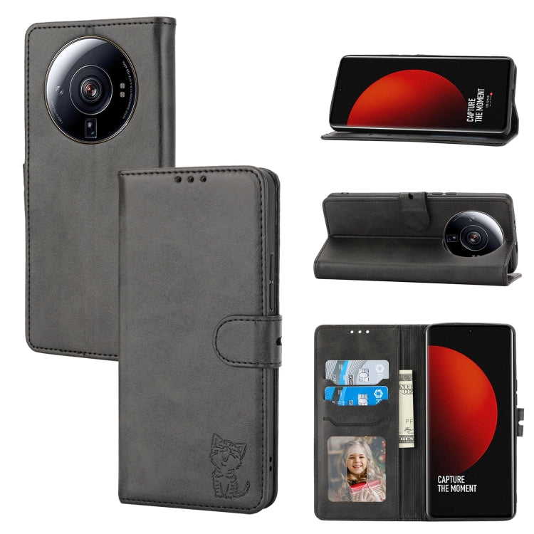 For Xiaomi 12S Ultra Embossed Happy Cat Pattern Flip Leather Phone Case